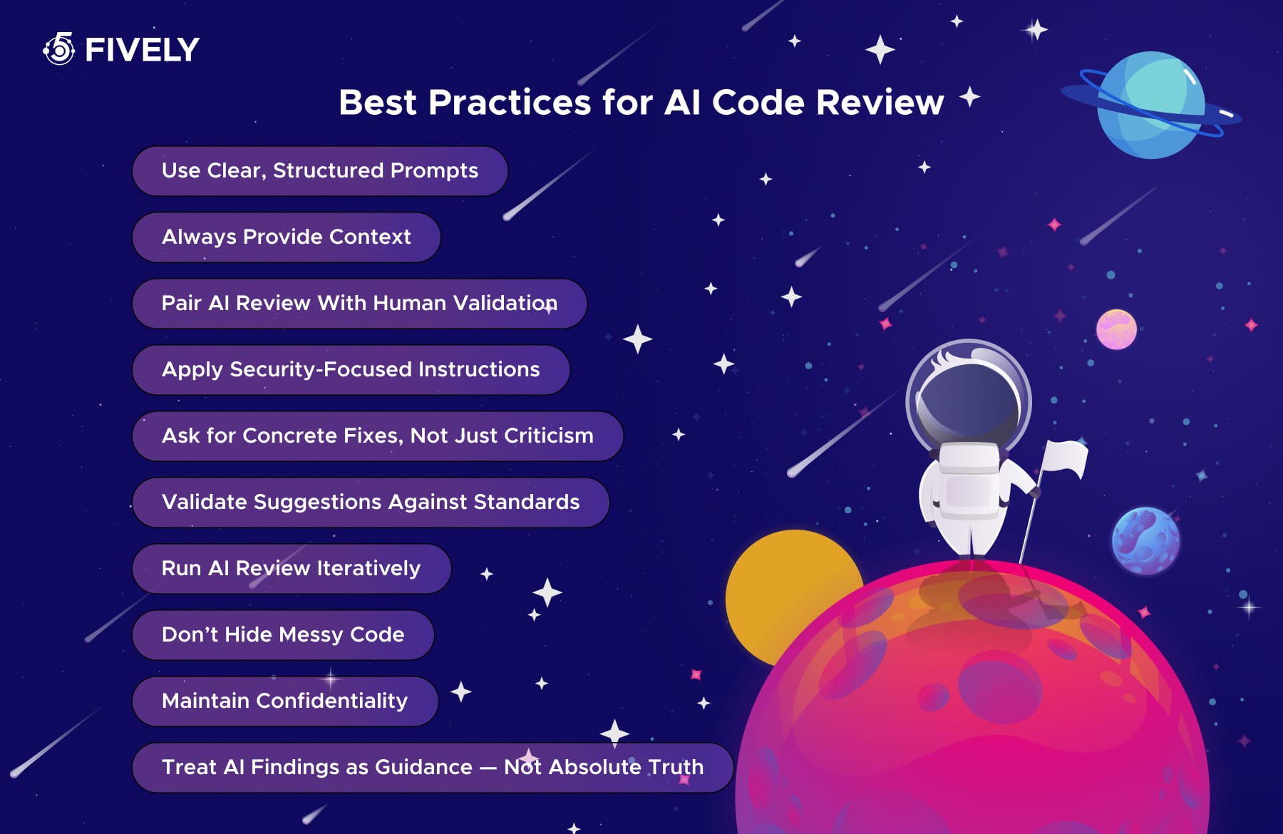 AI can significantly improve code quality — but only when it’s used intentionally. Treat it as a powerful assistant, not a replacement for sound engineering judgment. The practices below ensure your AI review sessions are accurate, actionable, and aligned with your team’s standards.